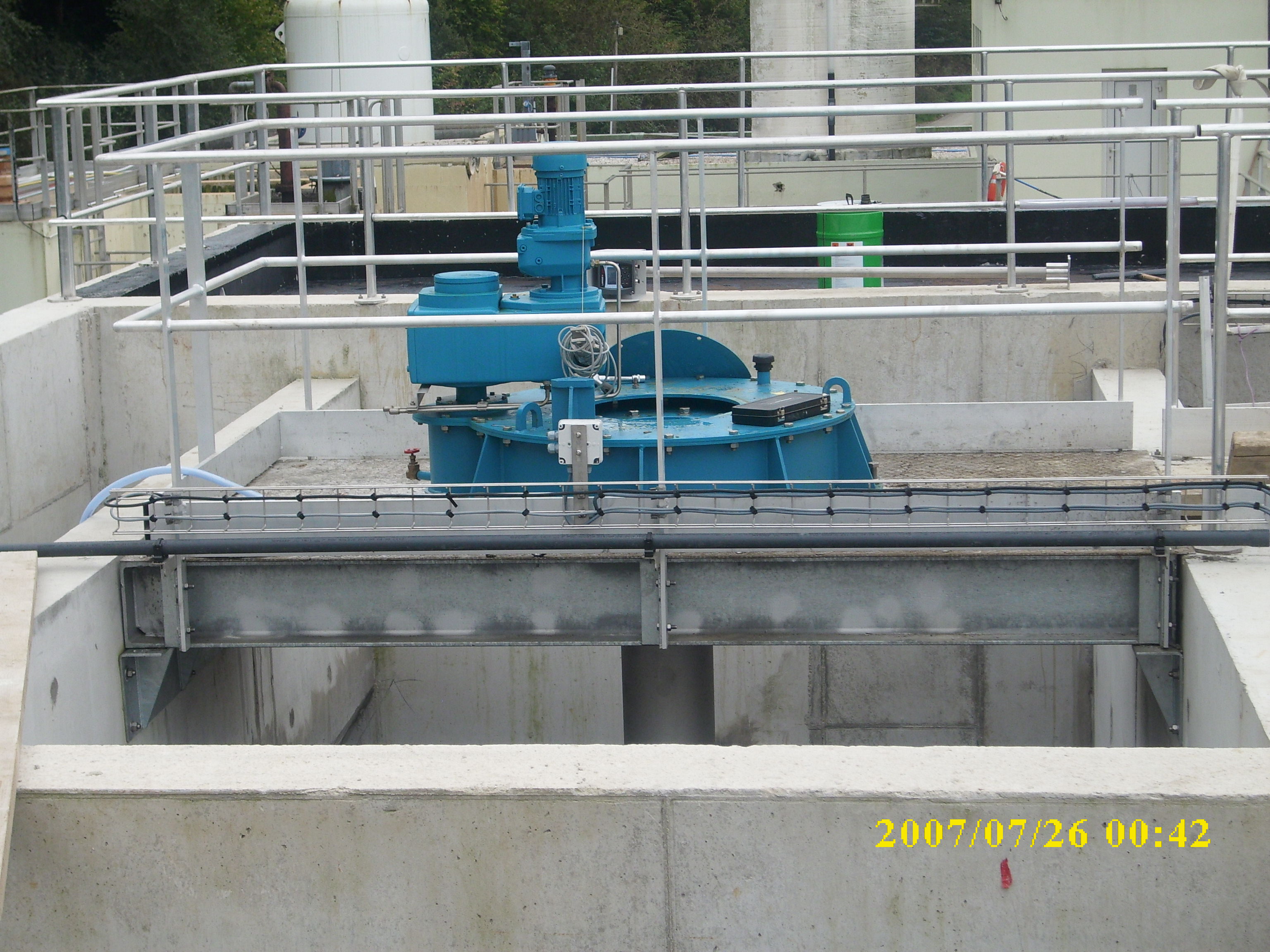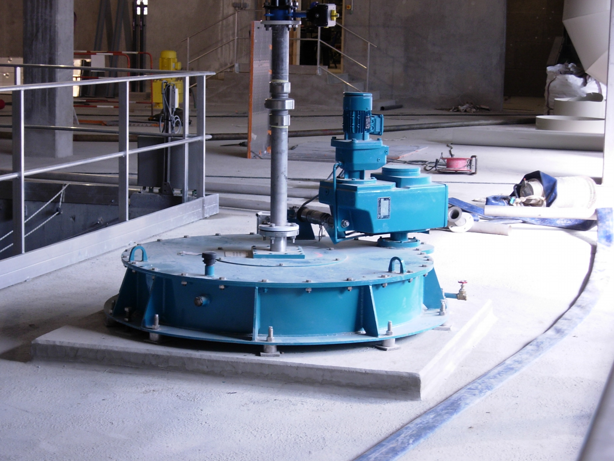 Les têtes d’entraînement assurent la rotation lente et continue du pont ou des bras racleurs, permettant la concentration des boues. Installée en partie haute de l’ouvrage, elle comprend un motoréducteur à couple élevé, un pignon ou un arbre d’entraînement, ainsi qu’un palier central dimensionné pour fonctionner en charge constante.