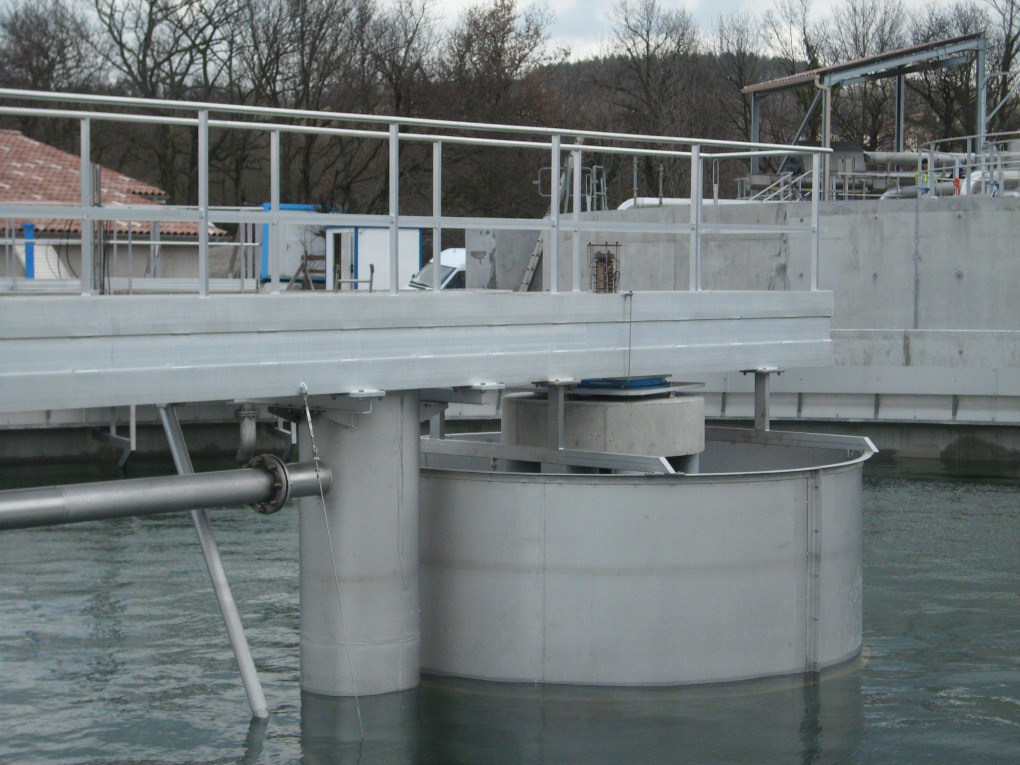 - Les herses et racleurs de fond assurent le déplacement lent et régulier des boues épaissies vers la zone d’extraction. Leur conception en pales inclinées optimise la poussée tout en évitant la remise en suspension des matières.