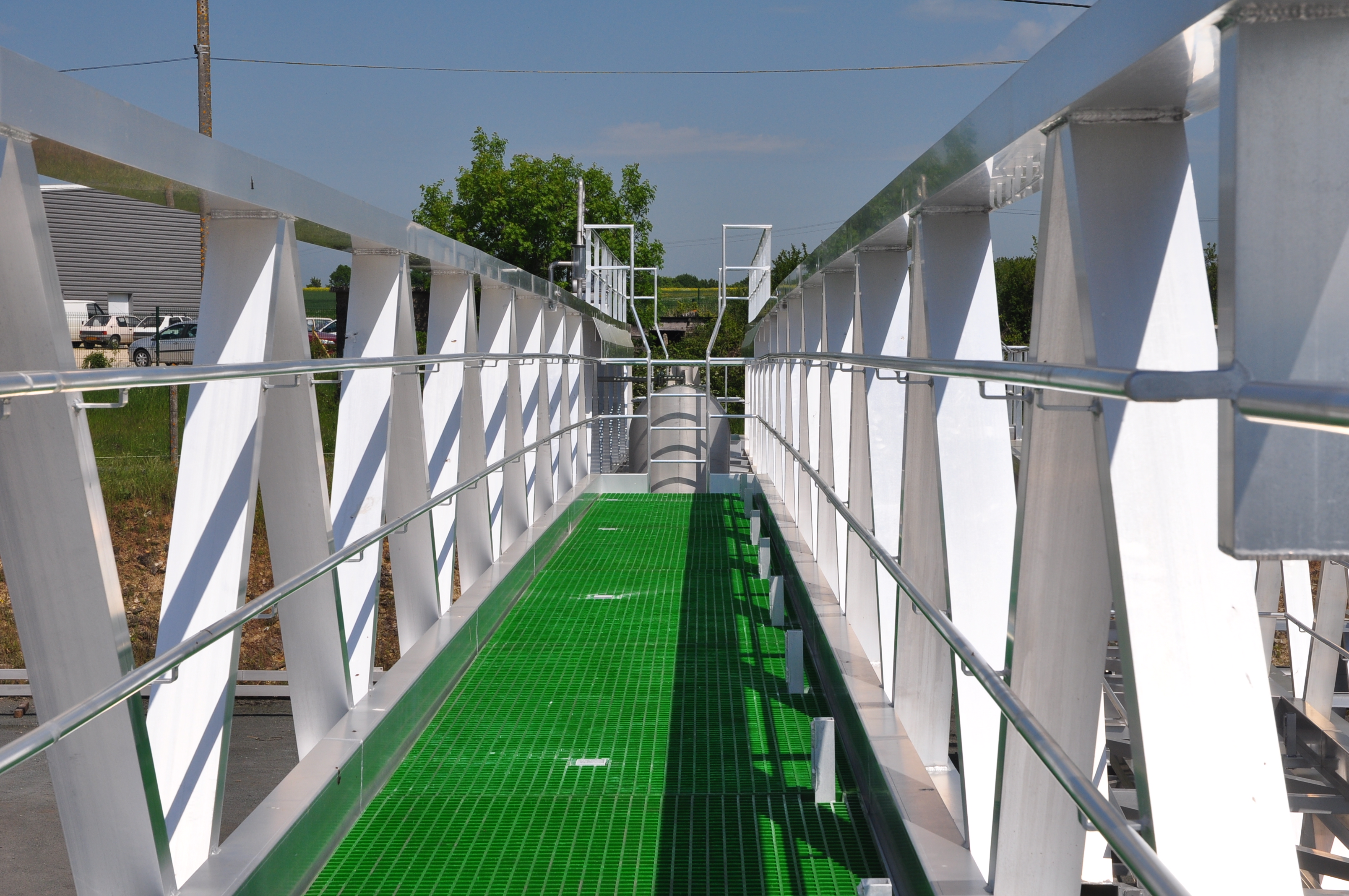 - Ces éléments, dimensionnés pour supporter les efforts de cisaillement, peuvent être réalisés en inox 304L ou 316L, tout comme le reste de la structure, assurant une résistance accrue à la corrosion et une durabilité maximale.