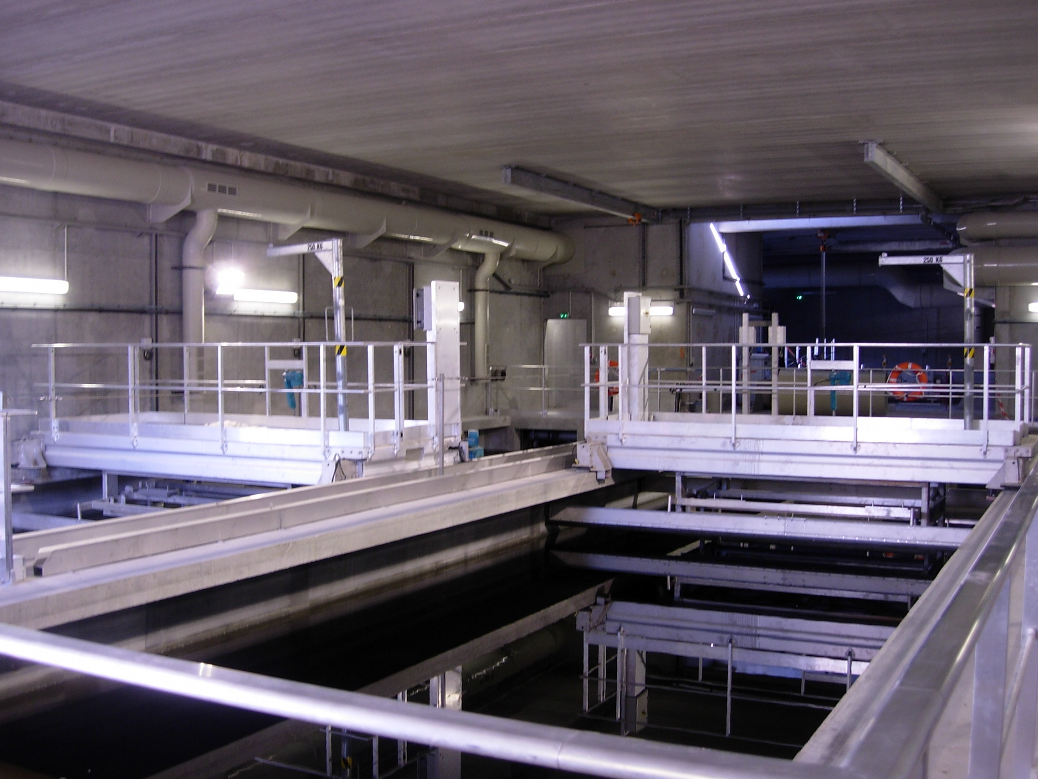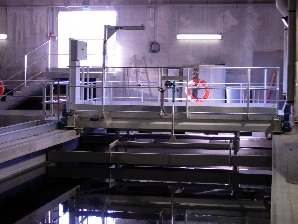 Le système se compose d’une passerelle de service, d’un pont mobile transversal ou d’un chariot de raclage se déplaçant sur rails le long du canal. Ce chariot entraîne un ou plusieurs racleurs en aluminium qui poussent les sables déposés vers un puits d’extraction situé en tête ou en extrémité du dessableur.